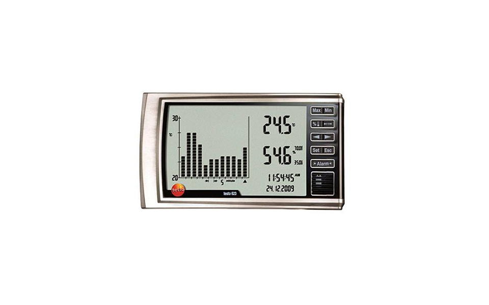 testo 623 數(shù)字式溫濕度表專(zhuān)為精確監(jiān)測(cè)室內(nèi)環(huán)境溫濕度而設(shè)計(jì)。用戶可自行選擇5種歷史數(shù)據(jù)顯示間隔,分別為5分鐘,10分鐘,1小時(shí),2小時(shí)及24小時(shí)。儀器自動(dòng)記錄90天內(nèi)的所有測(cè)量數(shù)據(jù),當(dāng)超出限值時(shí)還能自動(dòng)發(fā)出報(bào)警。